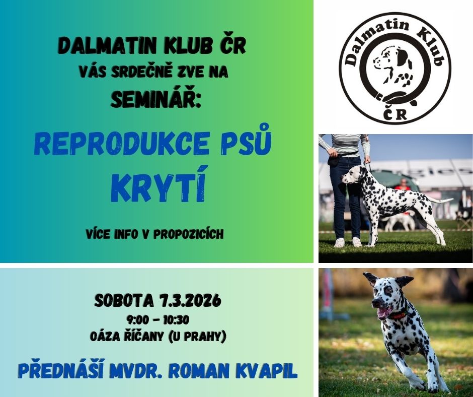 Dalmatin Klub ČR, z.s. Vás srdečně zve na 2 semináře na téma: