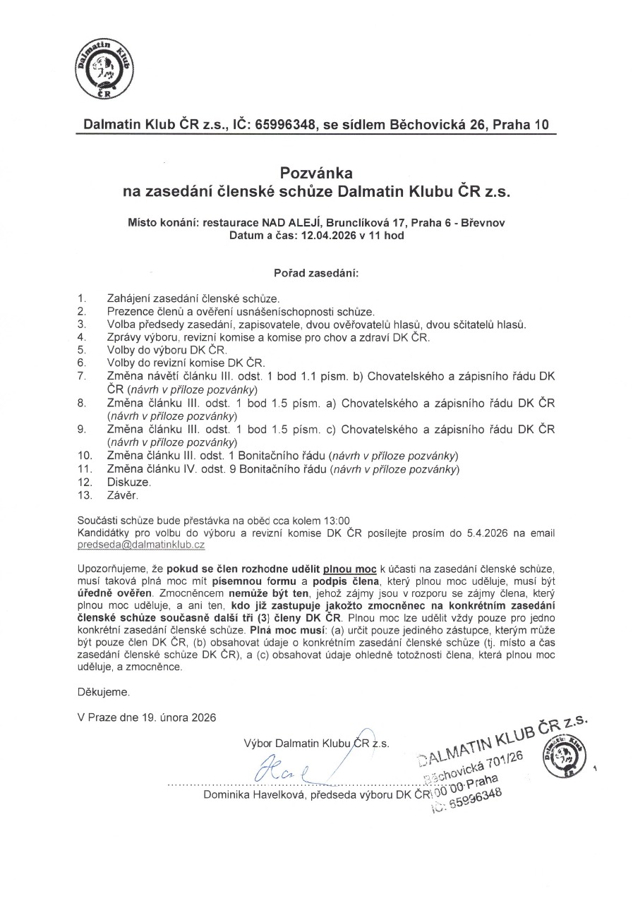 Pokud má někdo z členů klubu zájem kandidovat do výboru, prosím zašlete svou kandidaturu na email predseda@dalmatinklub.cz